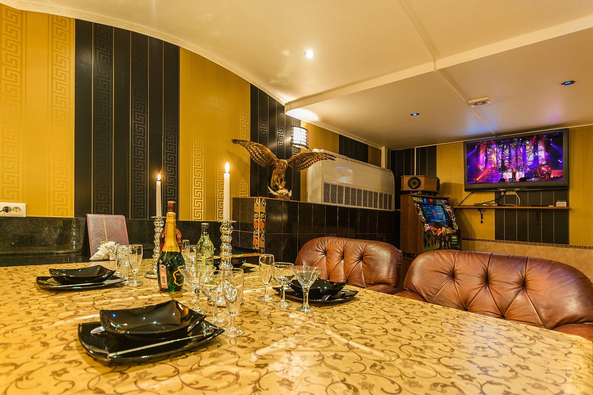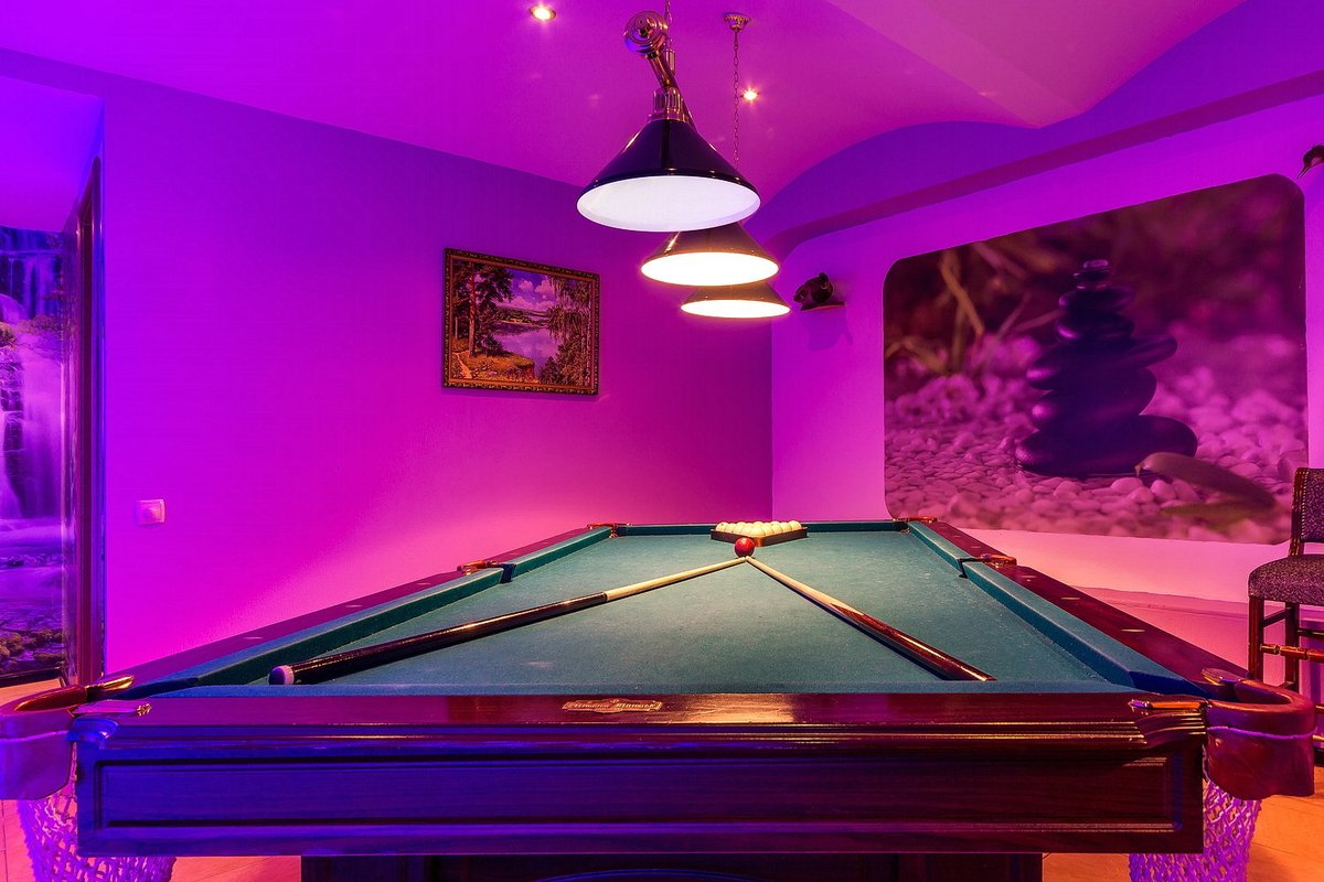 Не хочется в бассейн? Не беда! Вместо этого можно провести время в нашей комнате отдыха. Мы постарались создать здесь уютный, практичный интерьер из максимально натуральных, экологичных материалов, подобрать мебель, которая будет одновременно удобной и красивой. Надеемся, что он придется вам по душе! Для создания настроения мы можем предложить вам бильярд, кальян, камин и караоке. Также у нас имеется бар, где вы можете заказать блюда русской кухни, а при необходимости принести и собственную еду - мы не возражаем! Главное помните, что плотная трапеза непосредственно перед посещением парной - это не самая удачная идея, согласно мнению докторов. А вот после парной - совсем другое дело!