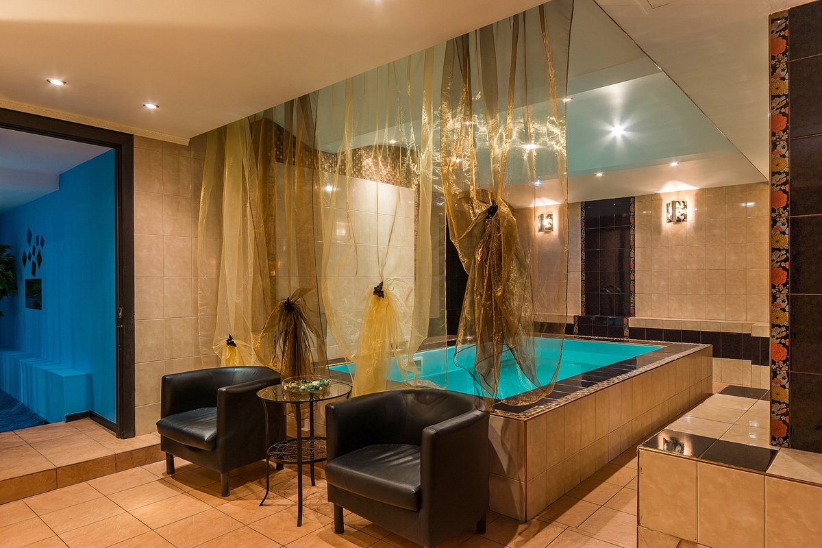 А если вы входите в число тех счастливчиков, чей организм хорошо реагирует на смену температур - к вашим услугам джакузи, купель и бассейн. Именно контрастные водные процедуры имеют максимальный бодрящий и общеукрепляющий эффект. Мы тщательно следим за состоянием купальной воды, у нас установлено современное оборудование для ее очистки - ведь мы знаем, в какой степени это важно для комфорта и спокойствия посетителей.